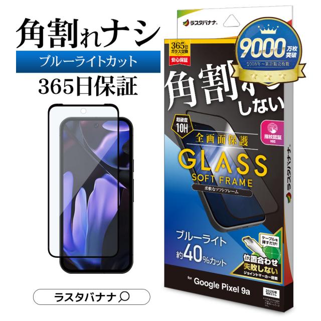 Google Pixel 9a ガラスフィルム 全面保護 ブルーライトカット 高光沢 透明 角割れしない 0.25mm 硬度10H 簡単貼り付けガイド 指紋認証対応 グーグルピクセル 保護フィルム SE4692P9A ラスタバナナ