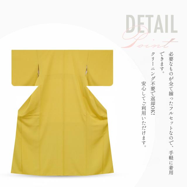 レンタル 高級正絹 色無地 フルセット M 結婚式 お宮参り 入学式 卒業式 法事 オシャレ着 貸衣装【往復送料無料】からし イエロー 山吹色 上品な彩り、格式高い 色無地 レンタルフルセット No.0020