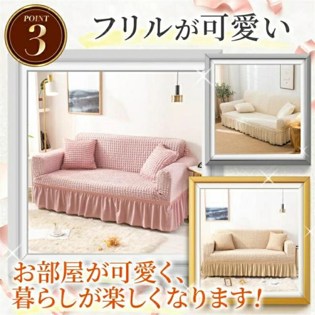 可愛いフリル付きのソファーカバーです。