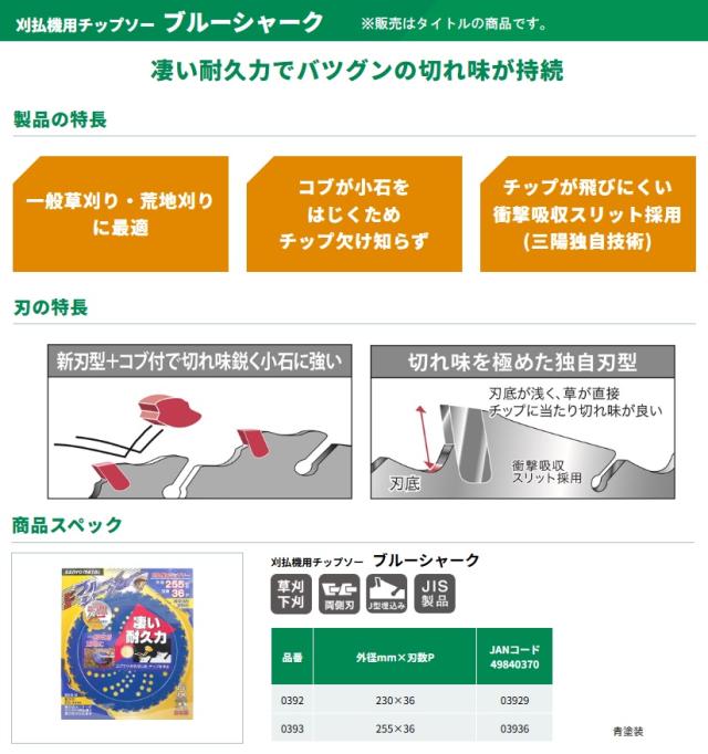 三陽金属 0393 刈払機用チップソー ブルーシャーク サイズ255x36P SANYO METAL 在庫