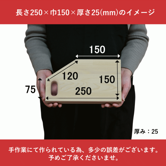 | サイズ | 長さ250mm×巾150mm×厚み25mm (寸法は手作業仕上げにつき若干の誤差がございます) |