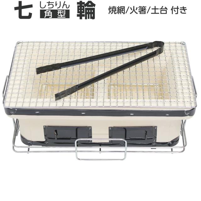 本格 珪藻土 角型七輪 OF7RK 網付 角アミ・火箸・敷台 角型ワイド 41cm × 24cm 炭火 長角 木炭コンロ 真ん中仕切り 火鉢 木炭 豆炭 やきとり