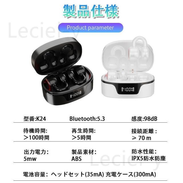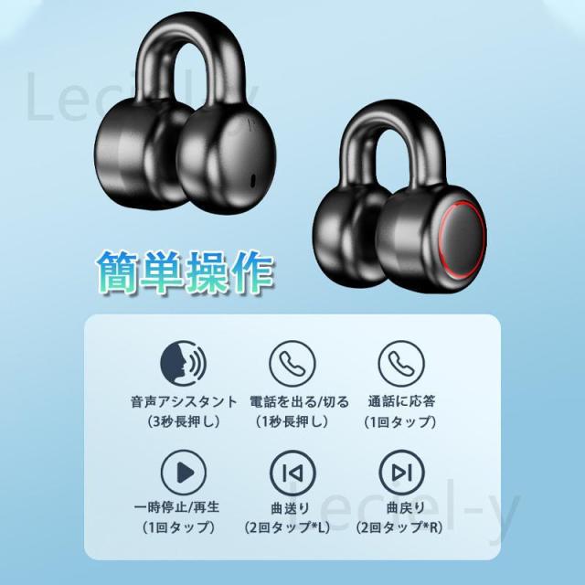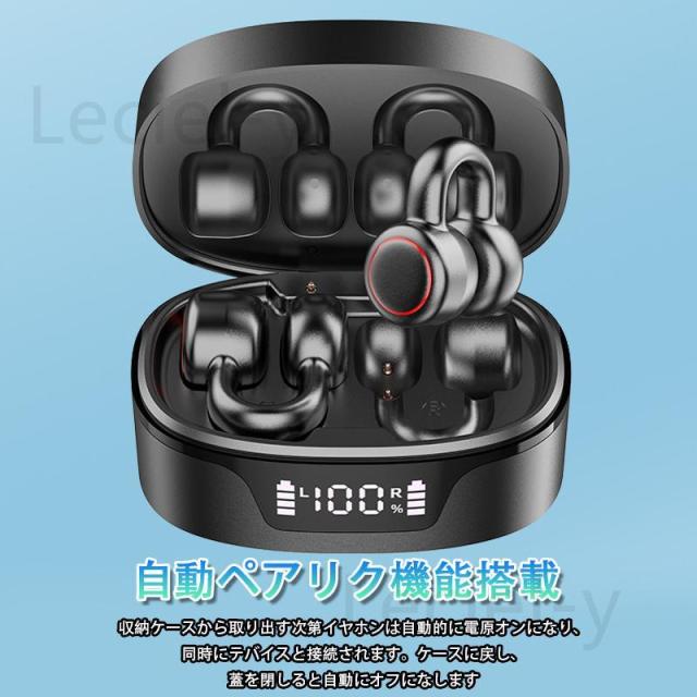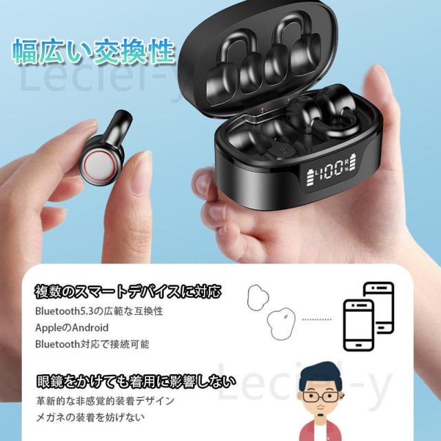 骨伝導イヤホン ワイヤレスイヤホン Bluetooth 5.3 ブルートゥースイヤホン 挟んで装着 タッチ制御 左右分離型 防水 大容量充電ケース付き Hi-Fi高音質 超軽量