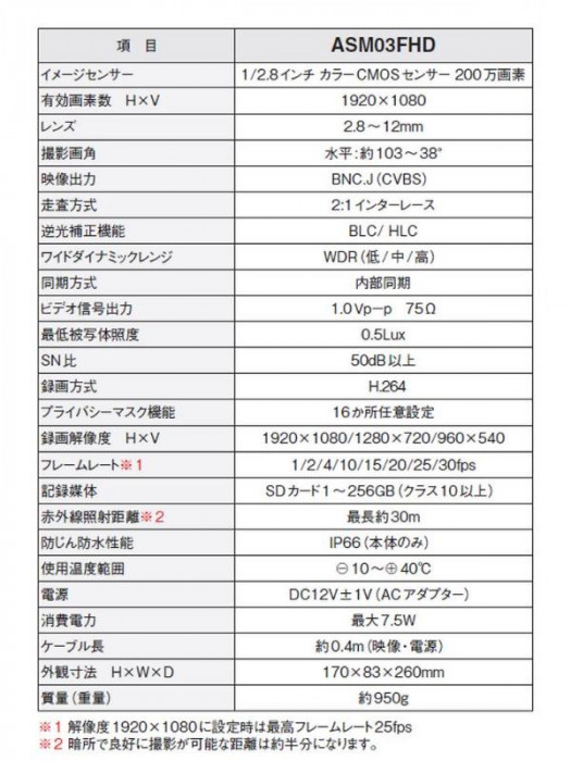 マスプロ電工 SDカードレコーダー内臓カメラ ASM03FHD【同梱・代引不可】