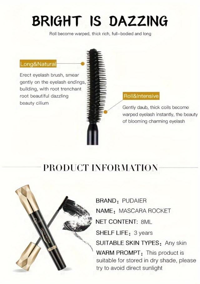 プダイエール ファイバーラッシュ マスカラ - 防水、にじみ防止、長持ちするブラックエクステンション、ナチュラルルック、剥がれや固まりなし、一日中豊かでボリュームのあるまつ毛、すべての肌タイプに適した植物ベースのフォーミュラ