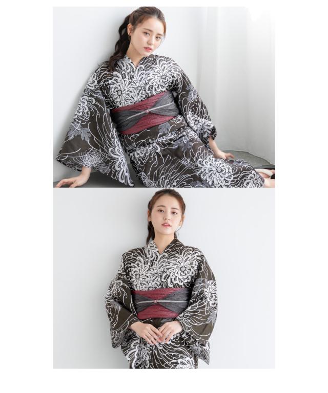 浴衣 セット レディース 浴衣セット 兵児帯 大人 3点セット レトロ モダン 黒 赤 菊花 花柄 綿 帯 下駄 夏 フリーサイズ 送料無料