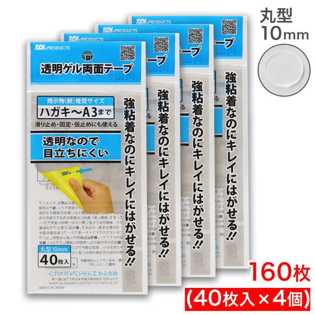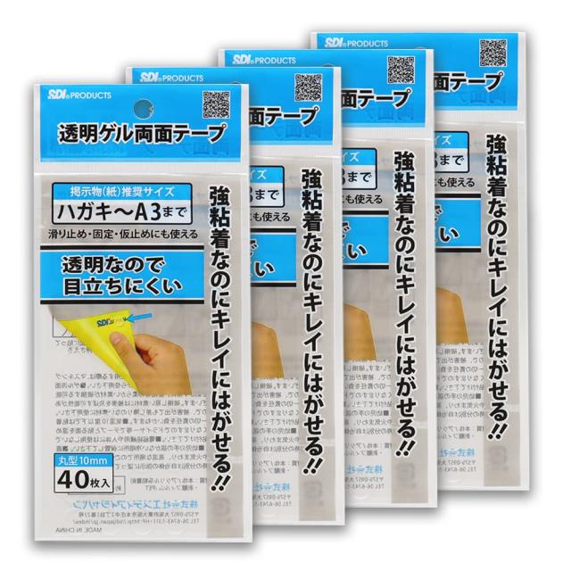 透明ゲル両面テープ 強粘着 丸型 10mm 40枚入 ×4個