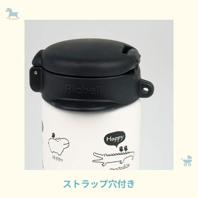 持ち運びに便利なストラップ付きで、外出時の水分補給にも安心。また、食器洗い乾燥機で洗えるため、日々のお手入れも簡単です。