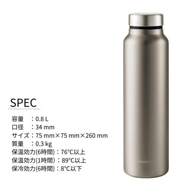 ピーコック 水筒 直飲み マグボトル AKY-80 800ml 真空断熱 保温 保冷 軽い シンプル マグ 漏れにくい 洗いやすい ステンレス