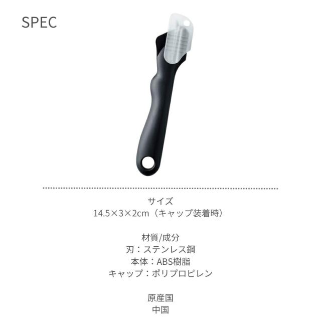 ・刃:ステンレス鋼、本体:ABS樹脂、キャップ:ポリプロピレン