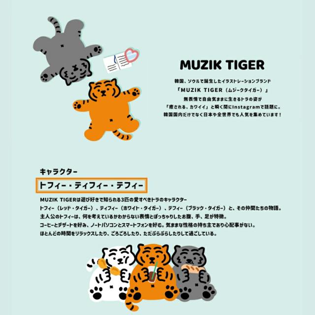 無表情なトラの姿がかわいらしい、韓国で生まれたイラストレーションブランドMUZIKTIGER(ムジークタイガー)の文房具グッズ。