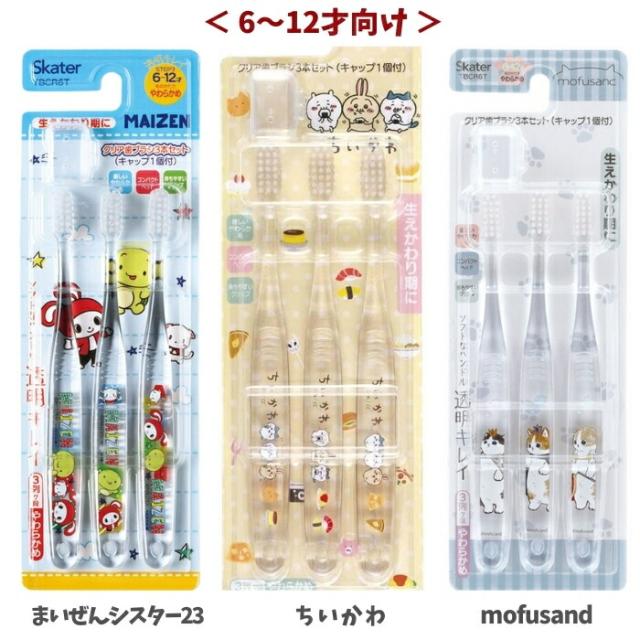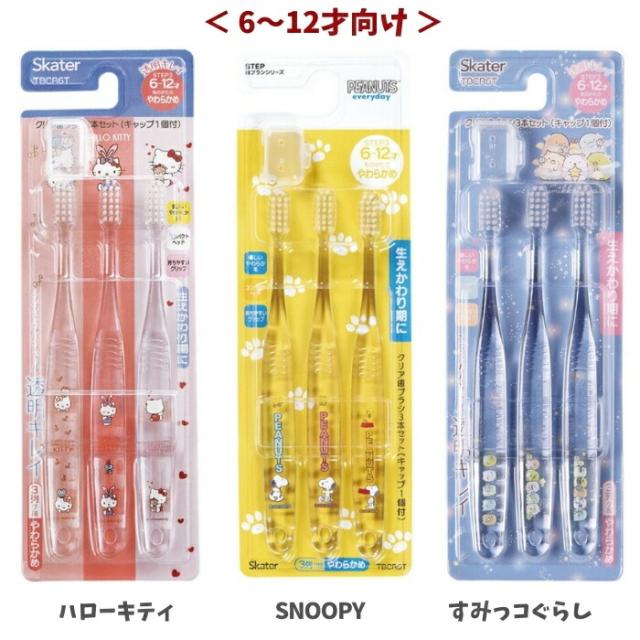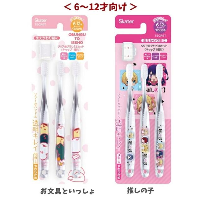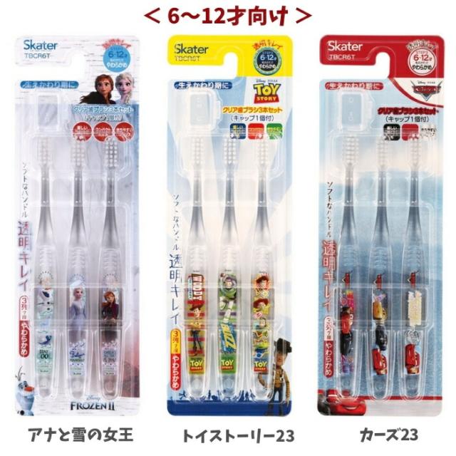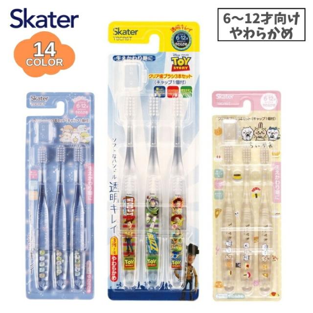 スケーター 歯ブラシ 3点セット クリア 6~12才向け メール便対応 やわらかめ キャップ付き 小学生 子ども キャラクター TBCR6T