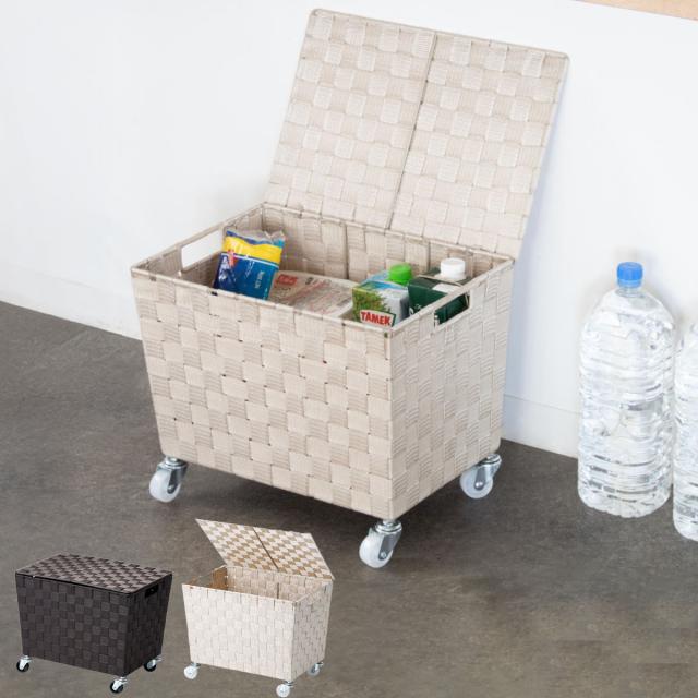 収納ボックス PPバスケット ふた付き キャスター付き 幅38×奥行26×高さ25cm ( 収納 収納バスケット 収納かご バスケット 深型 収納ケース かご カゴ 小物入れ キャスター ふた 付き 荷物入れ カフェ 飲食店 )
