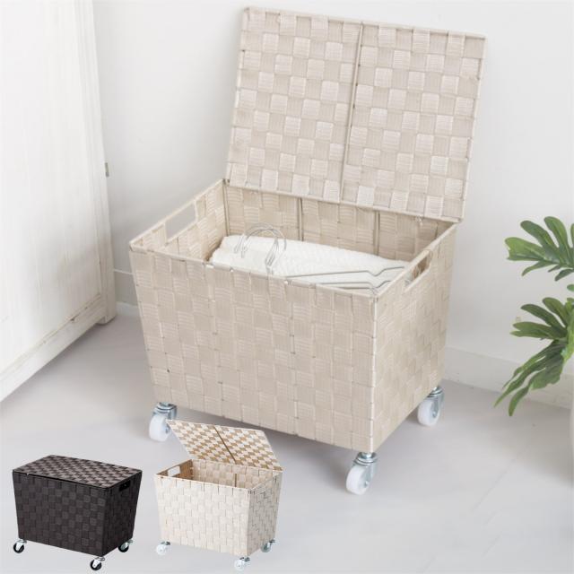 収納ボックス PPバスケット ふた付き キャスター付き 幅38×奥行26×高さ25cm ( 収納 収納バスケット 収納かご バスケット 深型 収納ケース かご カゴ 小物入れ キャスター ふた 付き 荷物入れ カフェ 飲食店 )