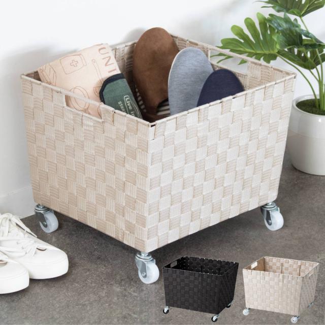 収納ボックス PPバスケット キャスター付き 荷物置き 幅40×奥行35×高さ26.5cm ( 収納 収納バスケット 収納かご バスケット 深型 収納ケース かご カゴ 小物入れ キャスター 付き 荷物入れ カフェ 飲食店 )