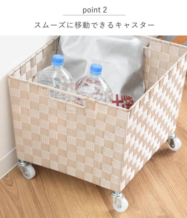ペットボトルやレトルト食品、詰め替え用の洗剤などの日用品をまとめて入れても楽に動かせて便利です。