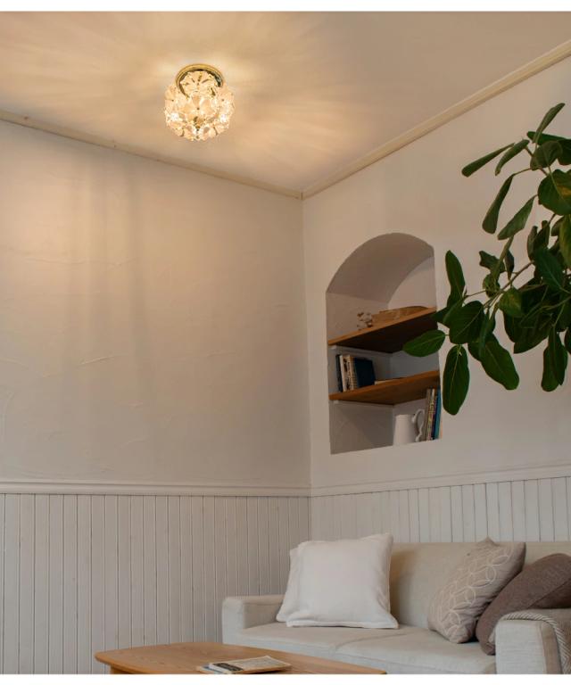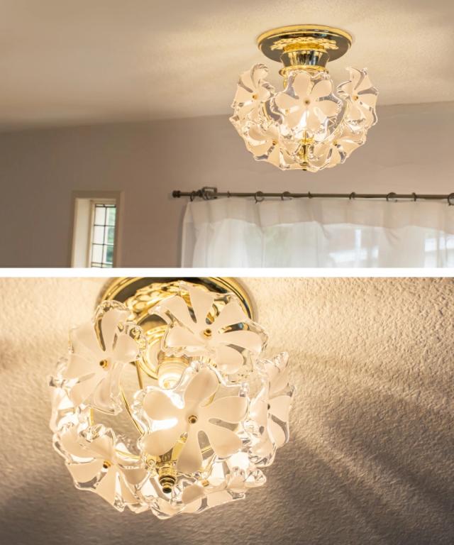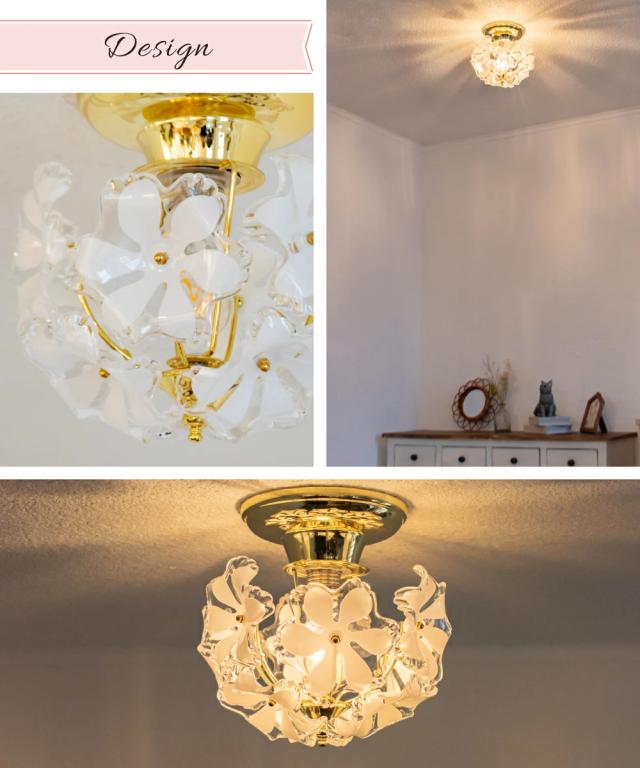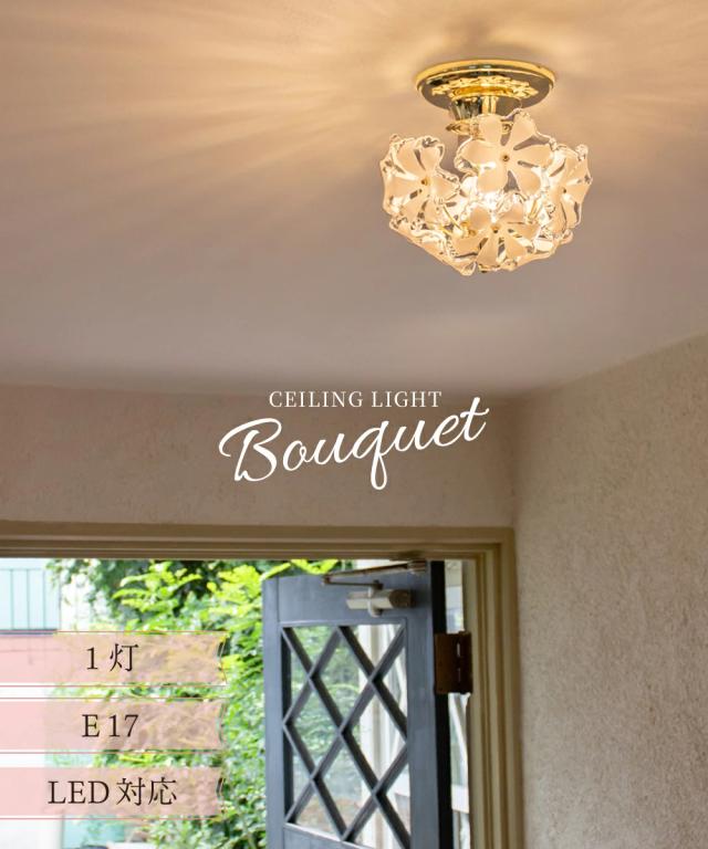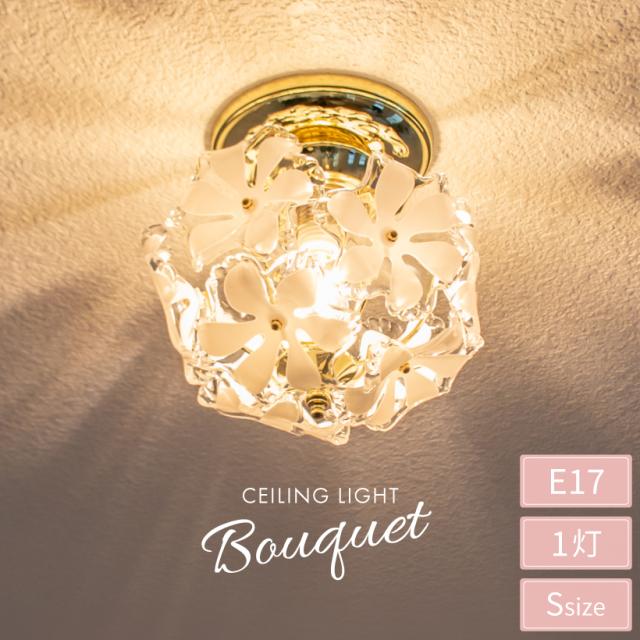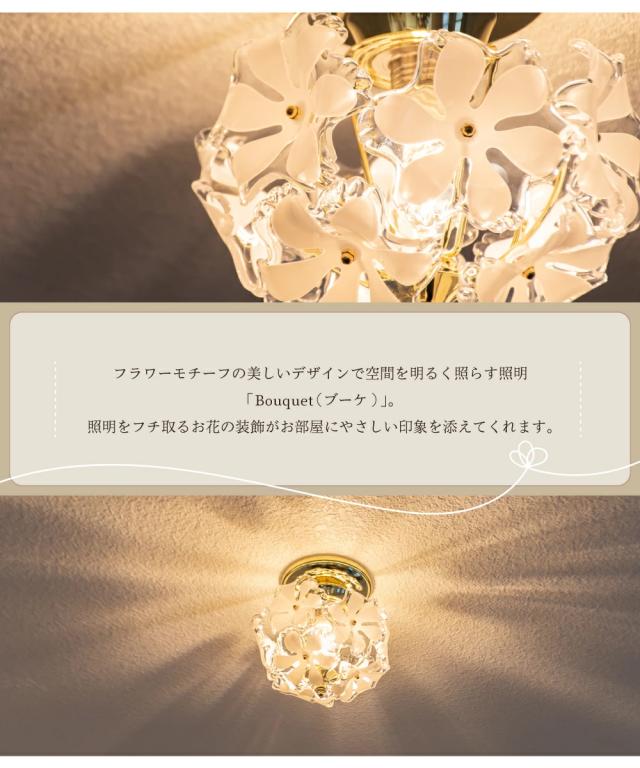 【Ampoule】 シーリングライト 照明 おしゃれ 1灯 ガラス 玄関 廊下 トイレ 洗面所 リビング ダイニング 寝室 北欧 花 フラワー レトロ モダン ラグジュアリー エレガント かわいい 照明器具 天井照明 間接照明 インテリア ゴールド 小さめ ミニ 金 ブラス Bouquet ブーケ S