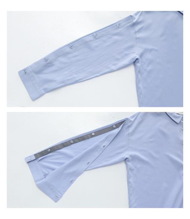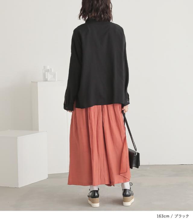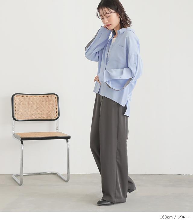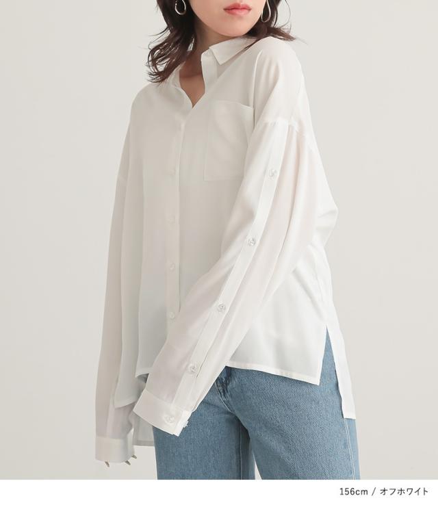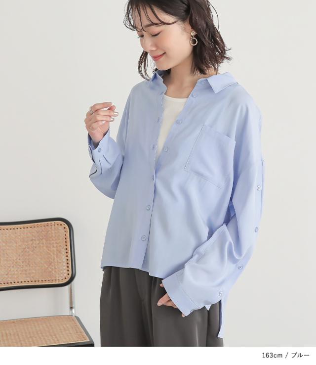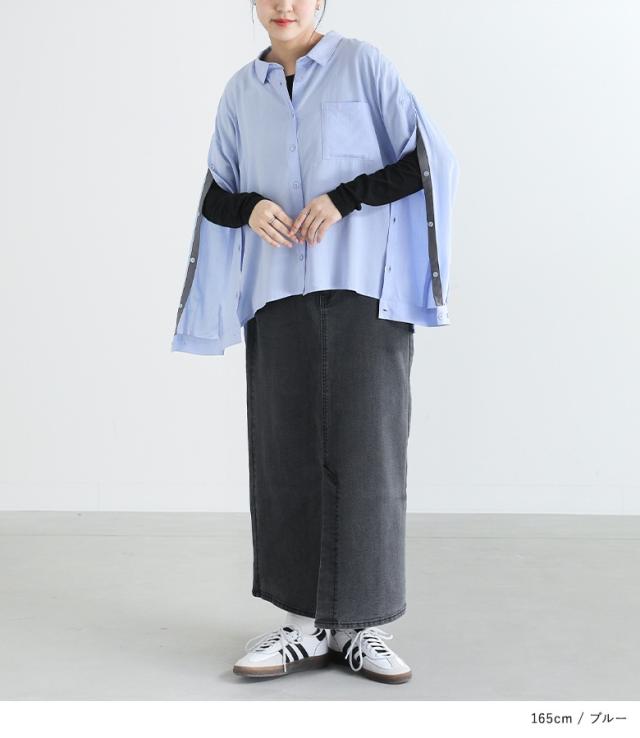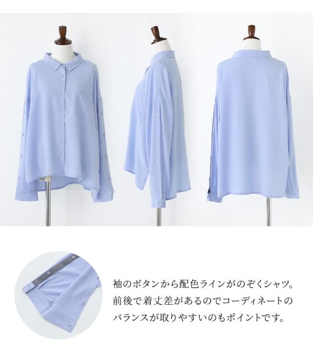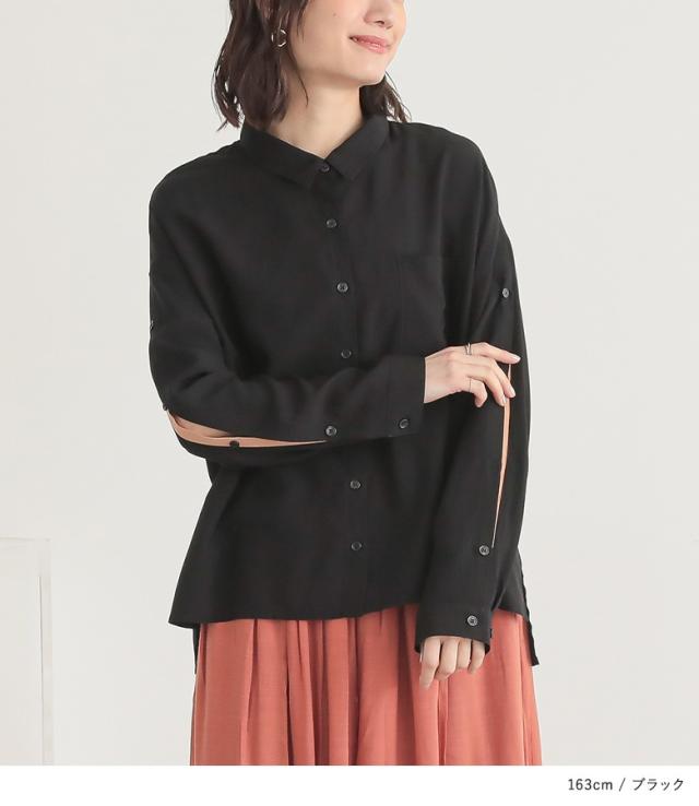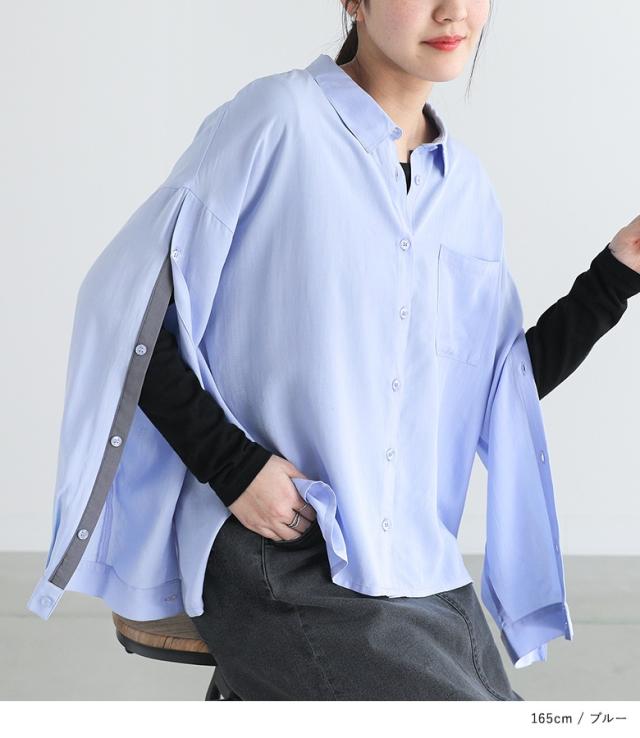 『配色オープンスリーブシャツ』※メール便可※【10】[シャツ レディース トップス ブラウス 長袖 ボタン 配色 前後差 スリット 落ち感 オープンスリーブ 体型カバー オシャレウォーカー]