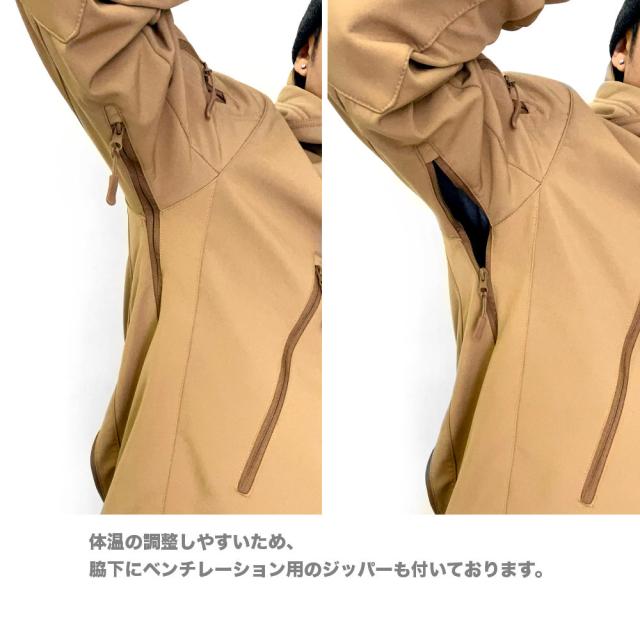 体温調節のしやすいように脇下にベンチレーション用のジッパーも付いていて、