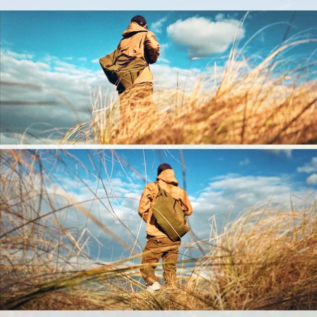 両腰の縦長のポケットはアウトドア用の大きな手袋がすっぽりと収まるサイズ