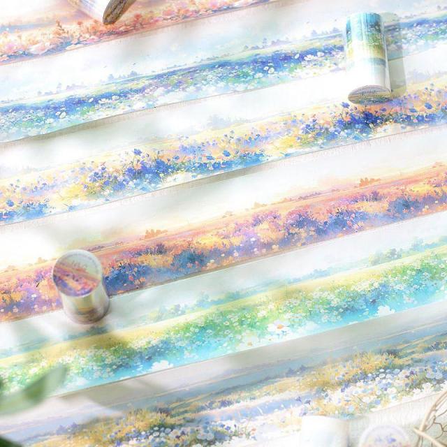 コラージュ 素材 マスキングテープ 風景 花畑 景色 花 フラワー 草原 地平線 背景 デコレーション 海外 テープ