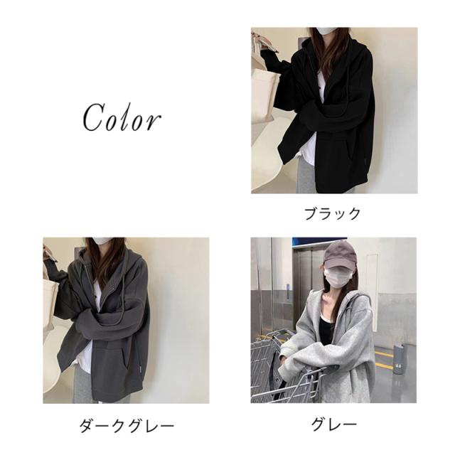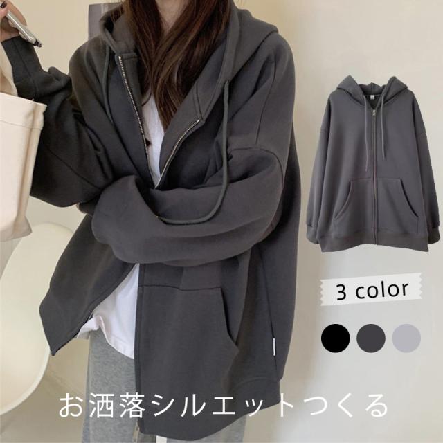 トレーナー パーカー レディース フード付き スウェット ジップアップ 長袖 トップス 春秋 カジュアル 無地 おしゃれ ロング 秋 新作