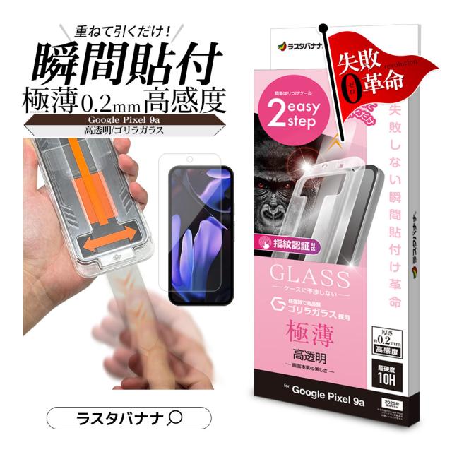 Google Pixel 9a ガラスフィルム 全面保護 高光沢 高透明 クリア 薄型 高感度 極薄 ゴリラガラス採用 0.2mm 硬度10H 貼付革命 瞬間貼り 失敗しない瞬間簡単貼り付け レボリューション 指紋認証対応 グーグルピクセル 保護フィルム MTK4699P9A ラスタバナナ