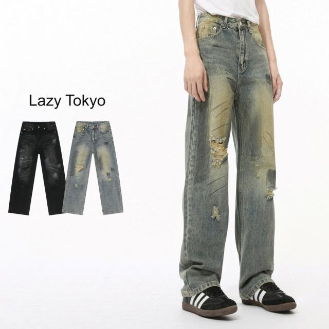 デニムパンツ メンズ ブルーデニム おしゃれ ブランド ジーンズ ジーパン Gパン ダメージ ヨゴシ加工 ハンドペイント加工 サンドウォッシュ Lazy Tokyo レイジートウキョウ ブランド 色落ち ヴィンテージ ビンテージ ユーズド 古着風 ブルー ブラック 青 黒 春服 夏服 秋服 冬服 カジュアル ストリート ストリート系 ストリートファッション 韓国 韓国系 韓国ファッション 下北沢 下北系 古着 古着系 90s 90年代 2000年代 Y2K 父の日 父の日ギフト 父の日プレゼント 20代 30代 40代 メンズファッション 東京 プレゼント 誕生日 記念日 贈り物 ギフト配送について