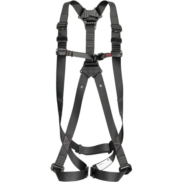 ●束縛感がの少ないベーシックフィット構造です。●肩に食い込まない46mm幅広ベルトです。●ハーネスを胴当てベルトに直接取り付けるから腰周りが広く使えます。●サイズ:L●色:黒●腿バックル:パススルー●ベルト幅(mm):46●最大使用可能質量(kg):100●胸ベルト幅(mm):26●適合ベルト幅(mm):50●厚生労働省「墜落制止用器具の規格」適合品●種類:フルハーネス型●背中ベルト:Y型●腿ベルト:水平型 質量1080g