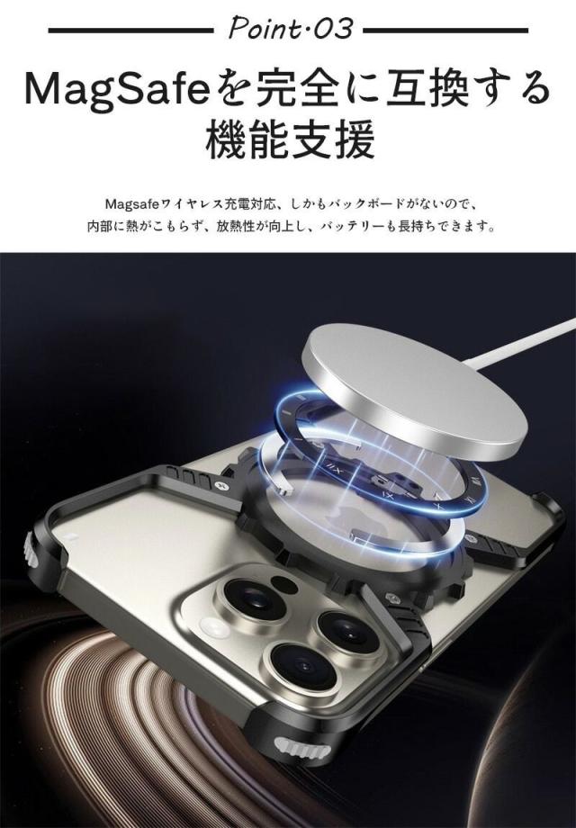 Magsafeワイヤレス充電対応、しかもバックボードがないので、内部に熱がこもらず、放熱性が向上し、バッテリーも長持ちできます。