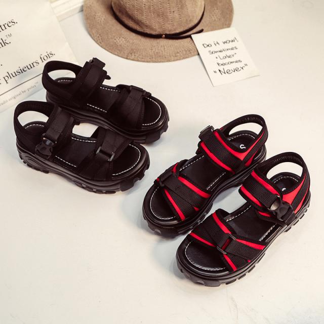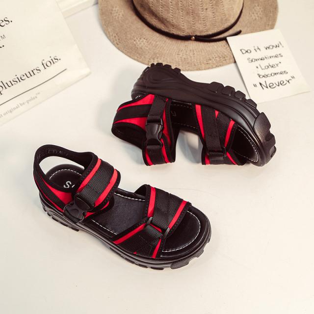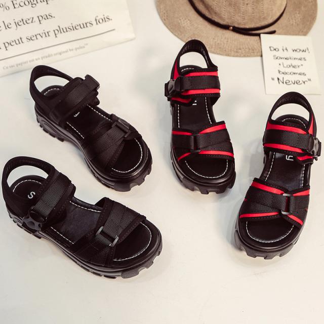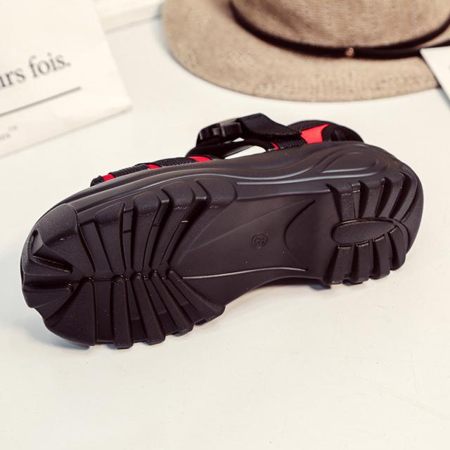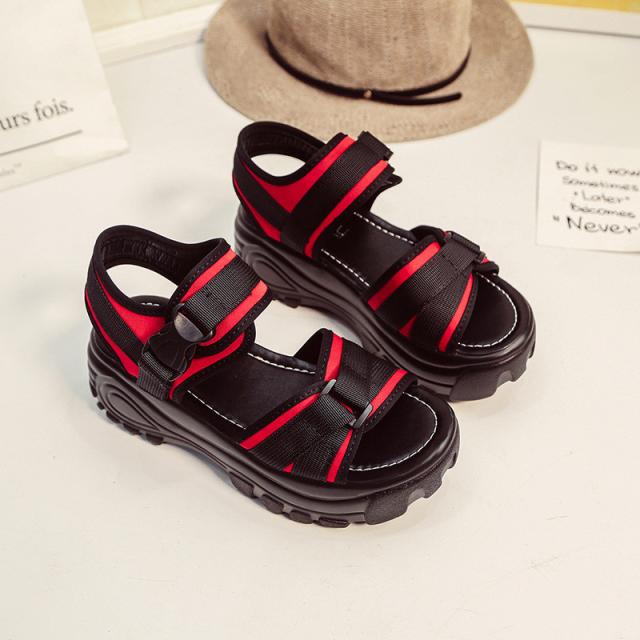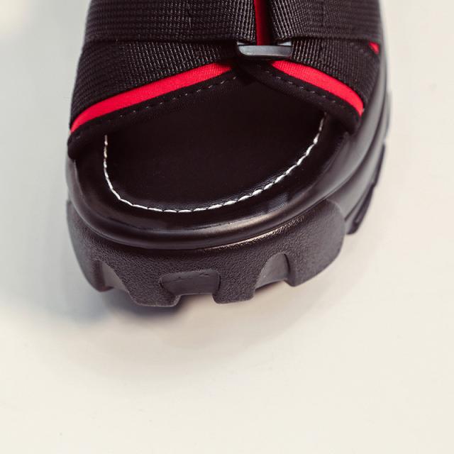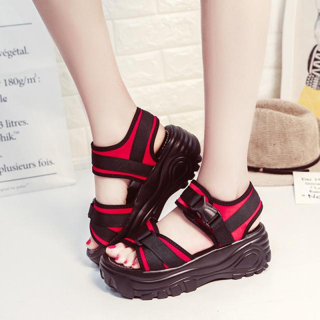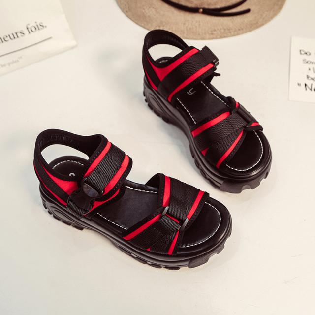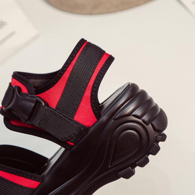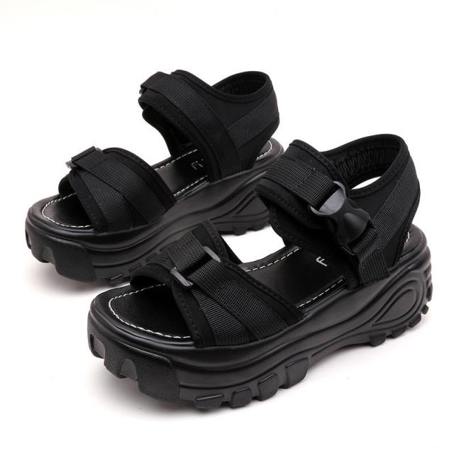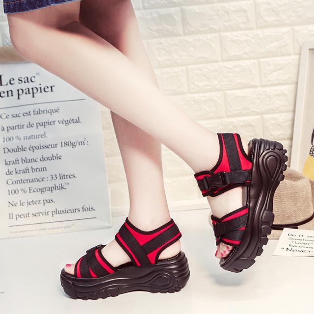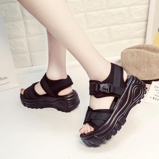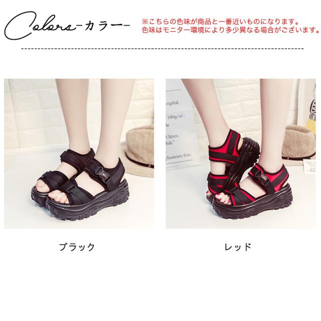 『すっきりとした足回りを魅せる厚底スポーツサンダル』