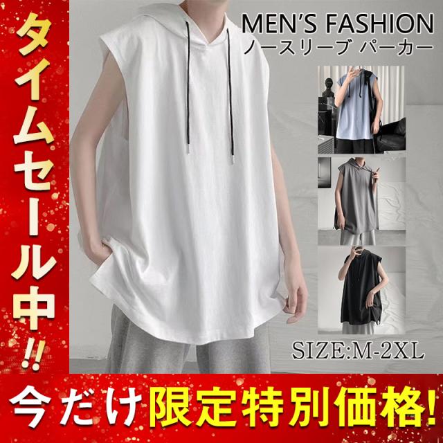 パーカー ノースリーブ メンズ カットソー スウェット フード付き プルオーバー タンクトップ メンズファッション 夏服 夏 カジュアル シンプル 軽量 着痩 無地 大きいサイズ Tシャツ アメカジ ビッグシルエット キャラクター ロック トップス おしゃれ 夏アイテム 涼しい サマー 20代 30代 40代 50代 紳士服 ゆったり 薄手