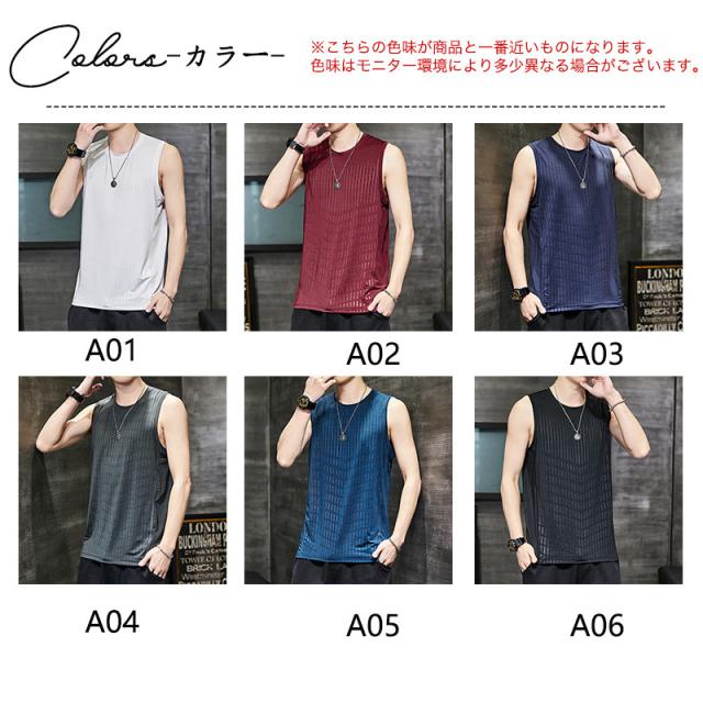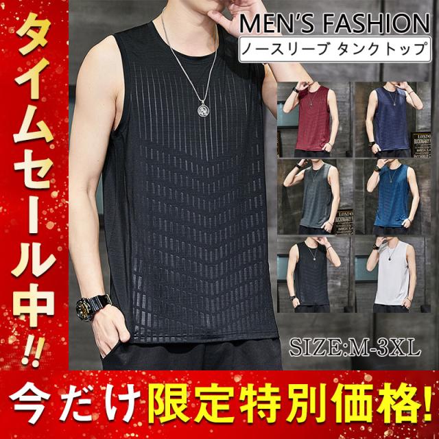 ノースリーブ タンクトップ メンズ Tシャツ カットソー 袖なし 大きいサイズ 接触冷感 防菌防臭 夏 トップス 軽量 薄手 通気