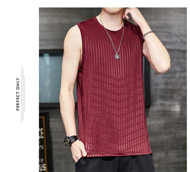 通気性吸汗性にすぐれたメンズノースリーブです。
