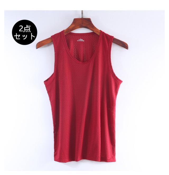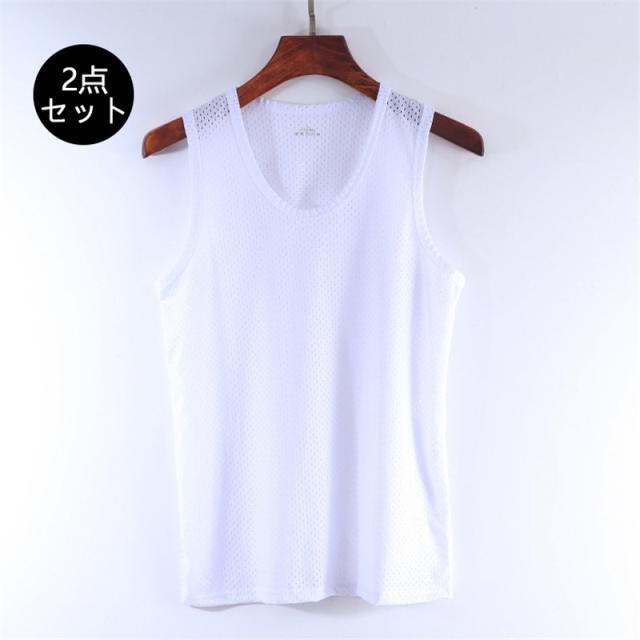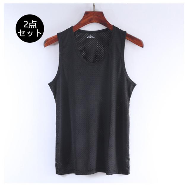 タンクトップ メンズ ノースリーブ 2点セット Tシャツ メッシュ 通気性 吸汗速乾 カットソー 夏 トップス 軽量 ランニング