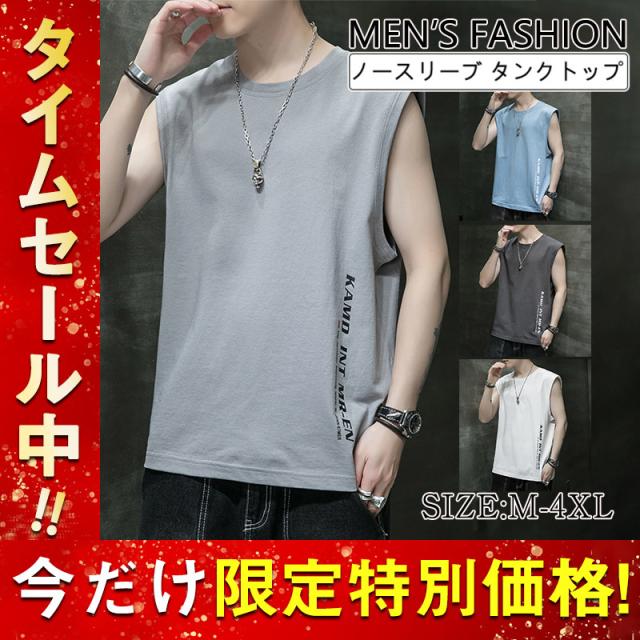 ノースリーブ タンクトップ メンズ Tシャツ カットソー 大きいサイズ 夏 トップス 袖なし 軽量 無地 薄手 通気性 ゆったり