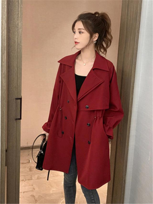 トレンチコート レディース スプリングコート 長袖 春服 ミドル丈 アウター 大きいサイズ カジュアル 韓国風 防風 卒業式 服