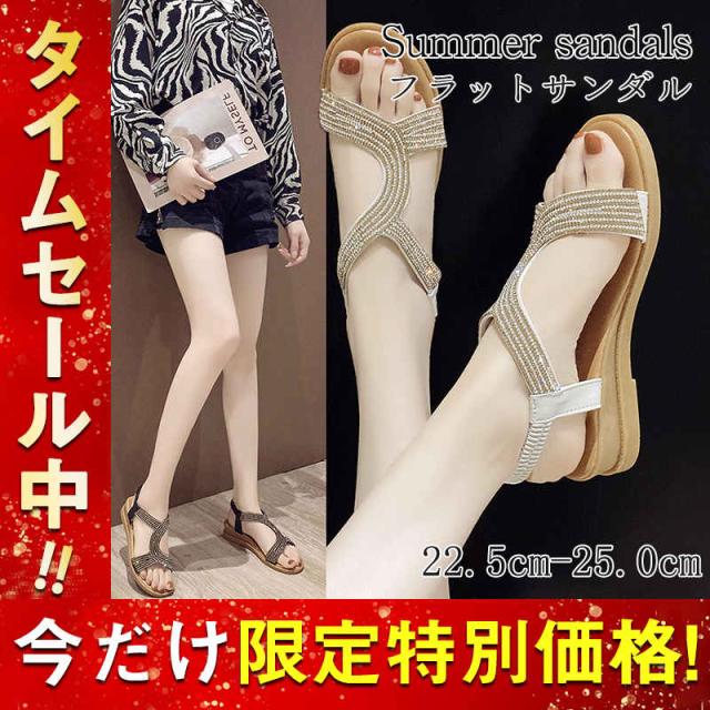 サンダル レディース 履きやすい 夏 サンダル ストラップサンダル 厚底靴 ウェッジソール グラディエーター キラキラ ぺたんこ