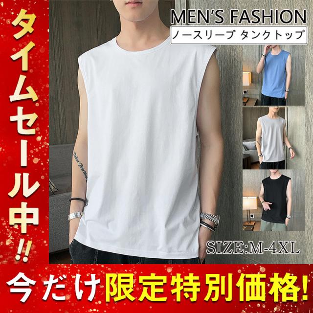 タンクトップ メンズ ノースリーブ Tシャツ カットソー 袖なし 大きいサイズ おしゃれ 夏 丸首 アメカジ ロゴT 軽量 無地