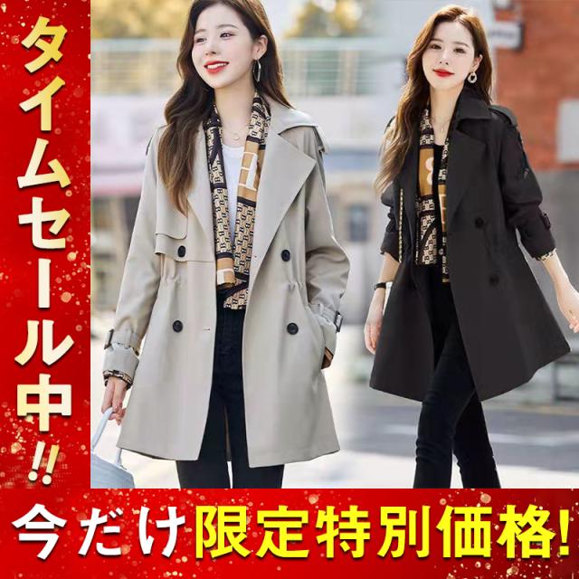 トレンチコート レディース スプリングコート ミドル丈 春服 春アウター 軽アウター お洒落 カジュアル シンプル 通勤