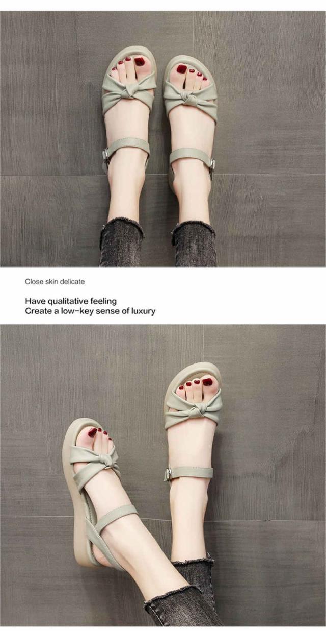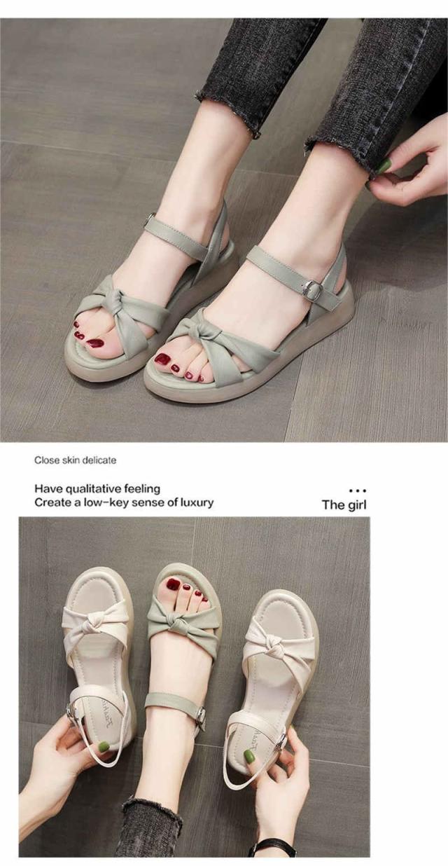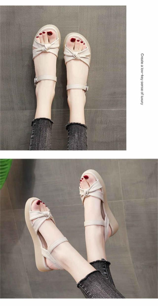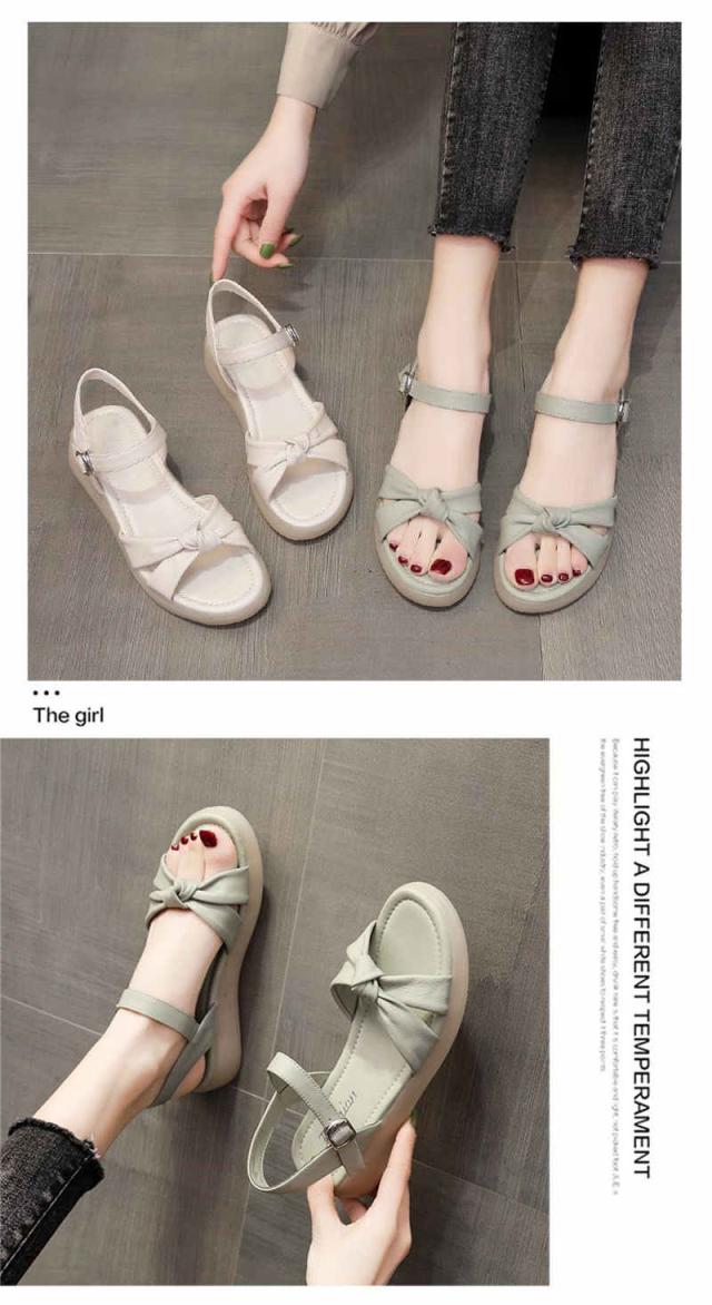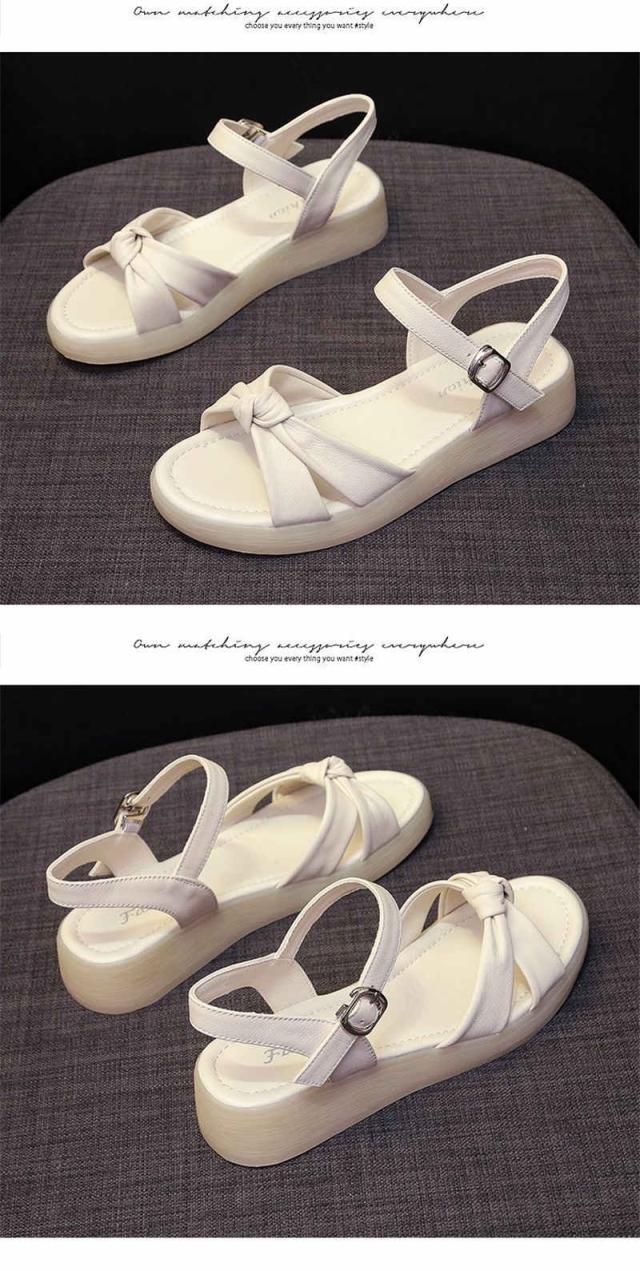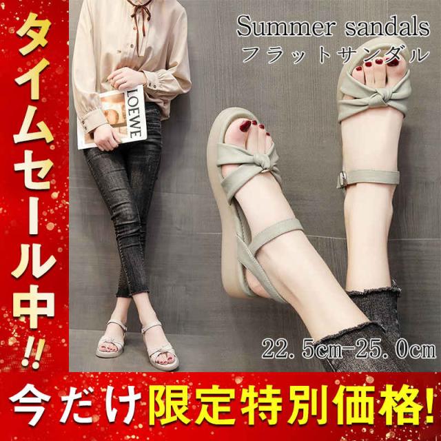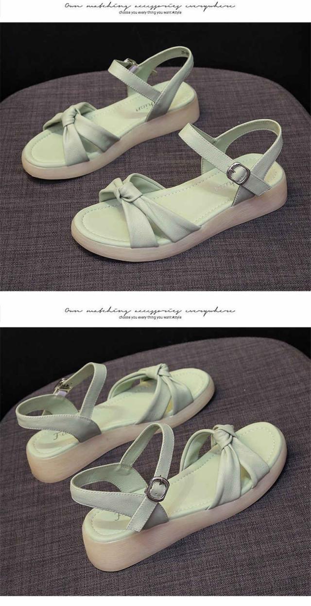 サンダル レディース 厚底 ビーチサンダル ローヒール リボン ぺたんこ 痛くない 軽い 疲れない スリッパ 軽量 シューズ 靴