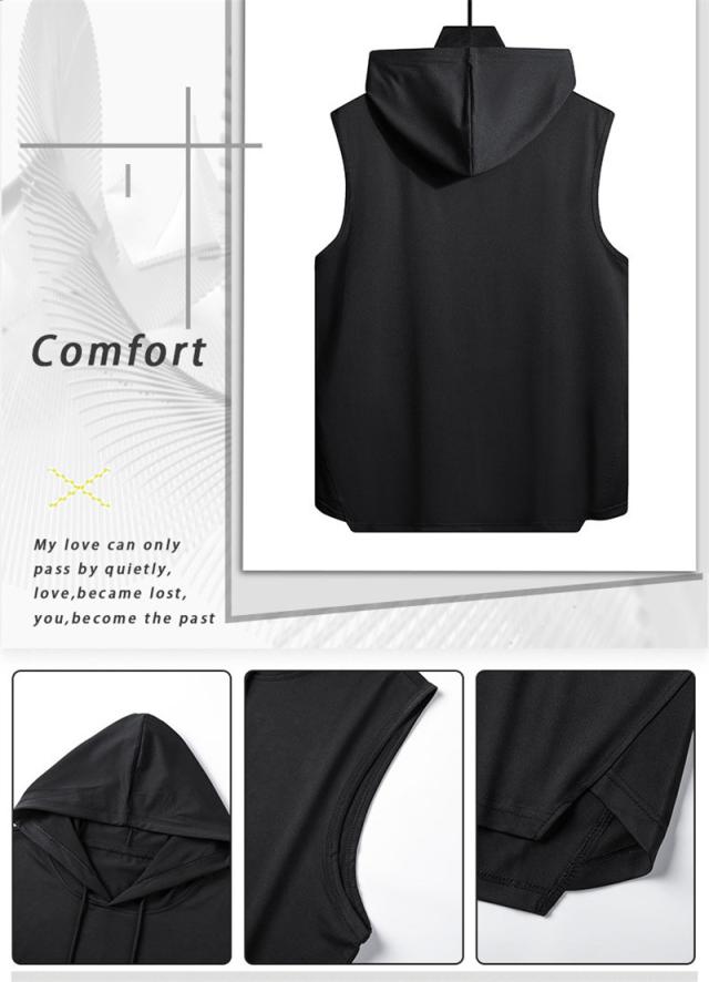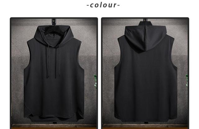 セール タンクトップ メンズ フード付き ノースリーブ パーカー tシャツ 無地 トップス 重ね着 スウェット カジュアル シンプ