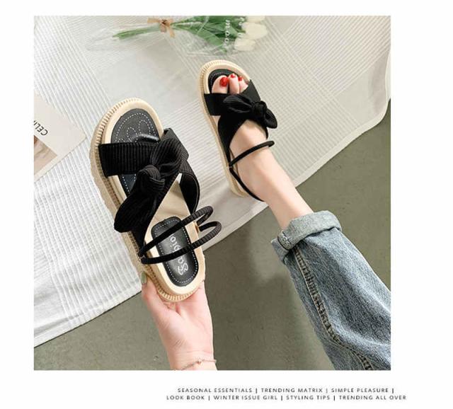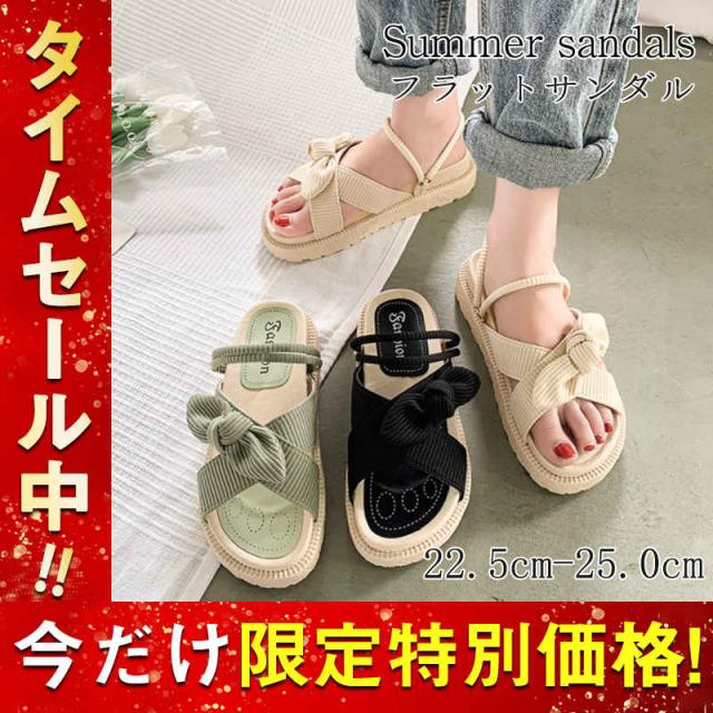 厚底サンダル レディース ビーチサンダル ローヒール サンダル リボン ぺたんこ 痛くない 軽い 疲れない シューズ 靴 美脚 ビ