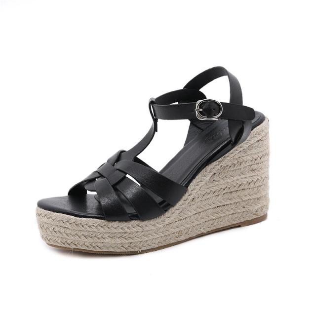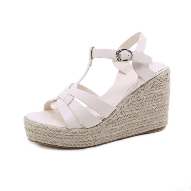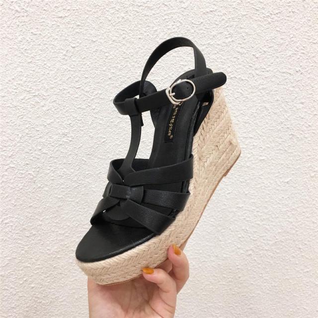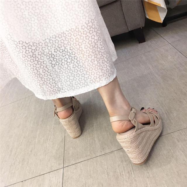 ウェッジソール レディース サンダル シューズ クロスゴムベルト 夏 ジュートサンダル 厚底 9cm ヒール サマーブーツ 疲れな