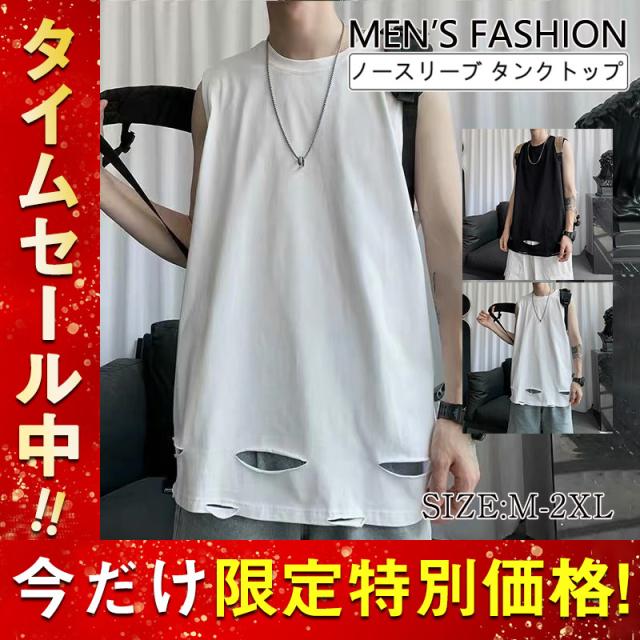 タンクトップ メンズ ノースリーブ Tシャツ カットソー 袖なし 大きい 夏 トップス 軽量 無地 ビッグシルエット ゆったり か
