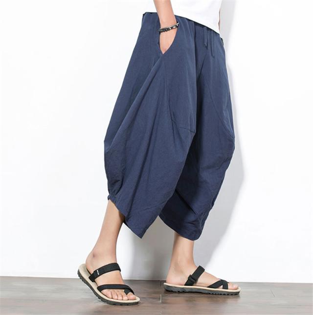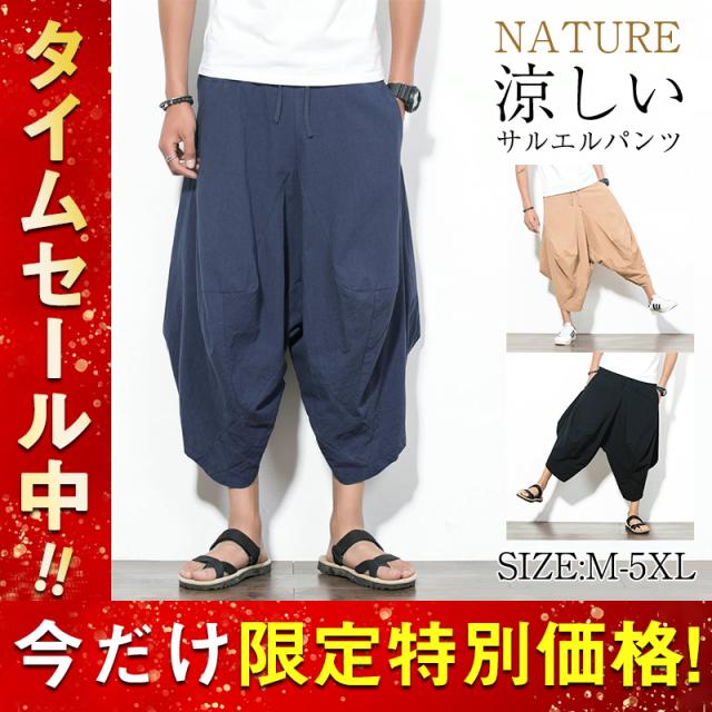 サルエルパンツ メンズ 綿麻 ズボン 長ズボン 綿麻パンツ リネン 薄手 イージーパンツ ワイドパンツ ルームウェア 部屋着 アンクルパンツ ウェストゴム ワイドパンツ 九分丈 チノパン 涼しい バギーパンツ エスニック テーパードパンツ テー カジュアル 大きいサイズ