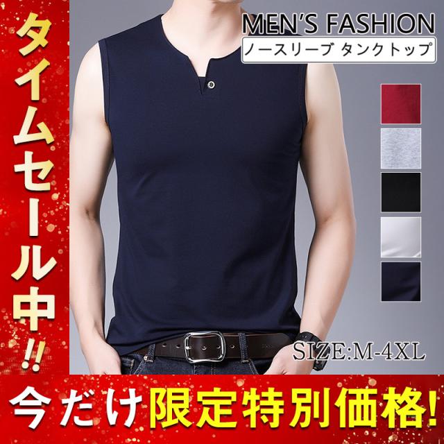 セール タンクトップ メンズ ノースリーブ Tシャツ Vネック カットソー 袖なし スポーツ フィットネス スウェット 無地 薄