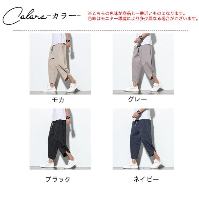サルエルパンツ メンズ 綿麻 ズボン 長ズボン 綿麻パンツ リネン 薄手 イージーパンツ ワイドパンツ ルームウェア 部屋着 アンクルパンツ ウェストゴム ワイドパンツ 九分丈 チノパン 涼しい バギーパンツ エスニック テーパードパンツ テー カジュアル 大きいサイズ