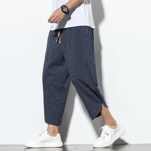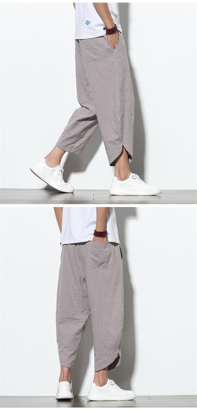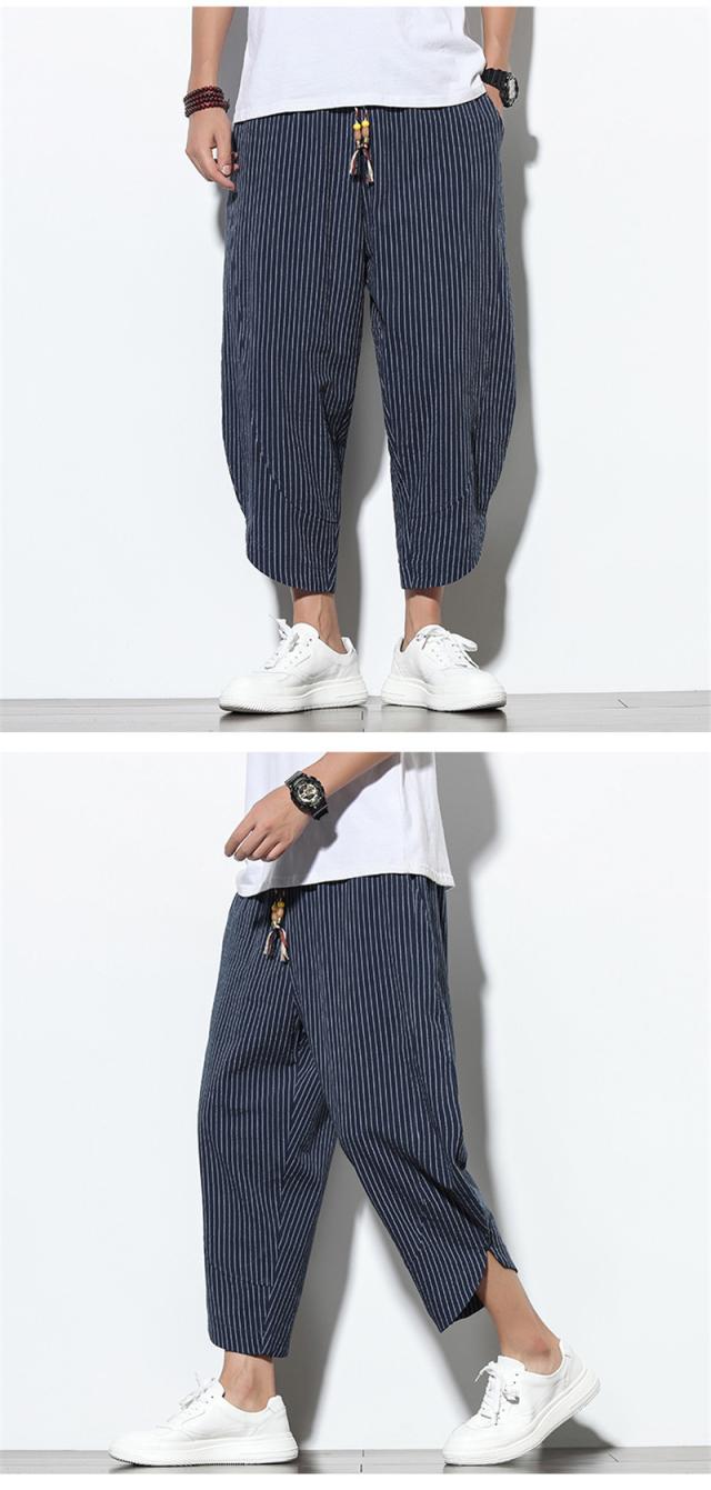 サルエルパンツ メンズ ワイドパンツ リネンパンツ ハーフパンツ パンツ ストライプ ボトムス スボン 涼しい ガウチョパンツ 軽