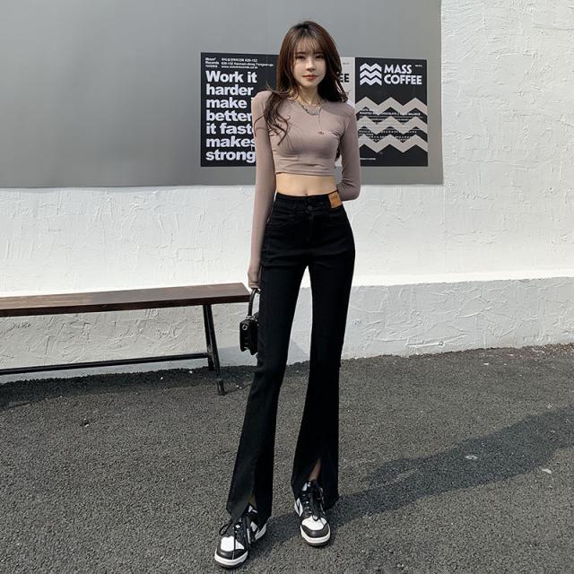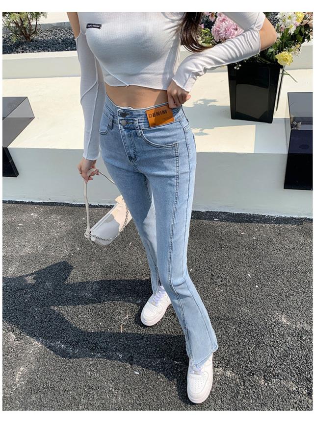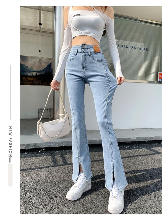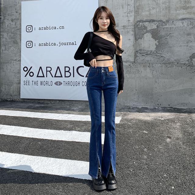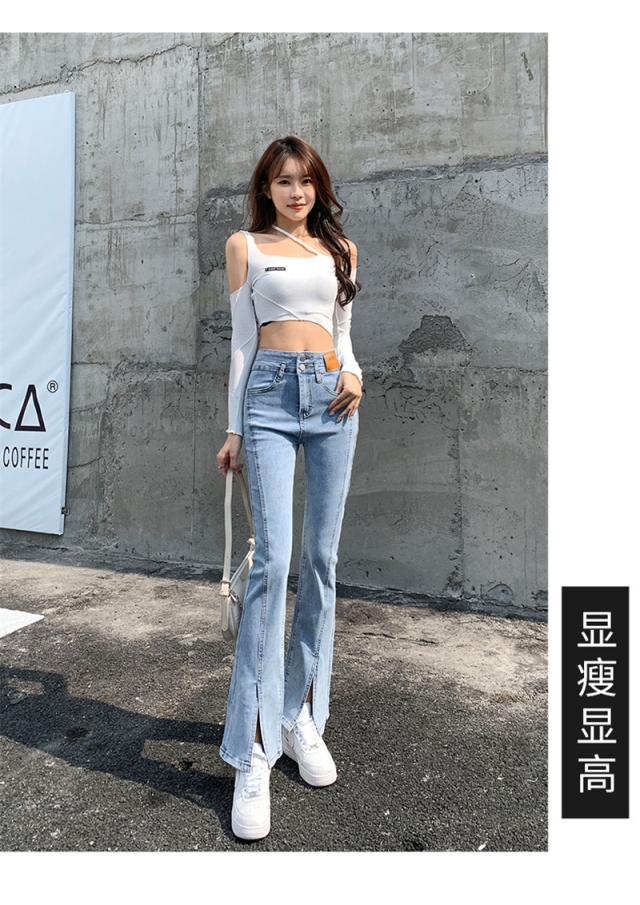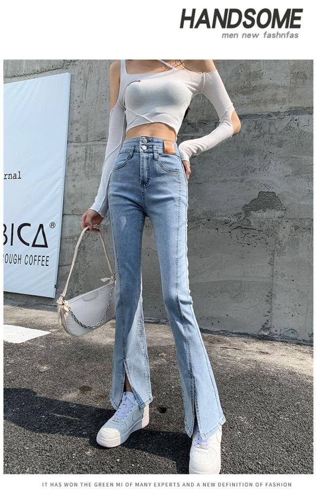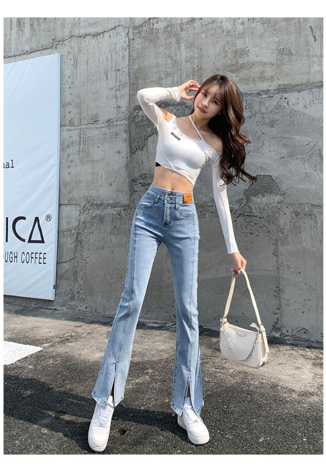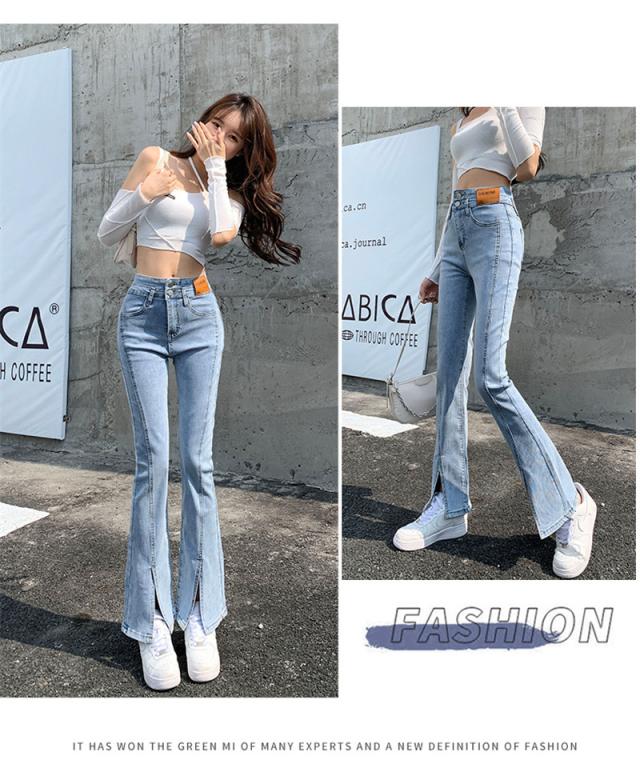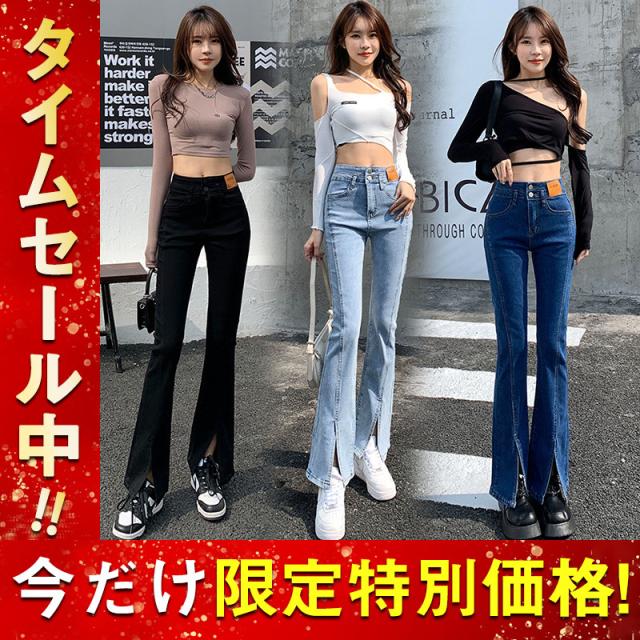 デニムパンツ レディース フレアパンツ ロングパンツ ハイウエスト 春 夏 美脚 脚長 韓国 スリム デイリーコーデ カジュアル